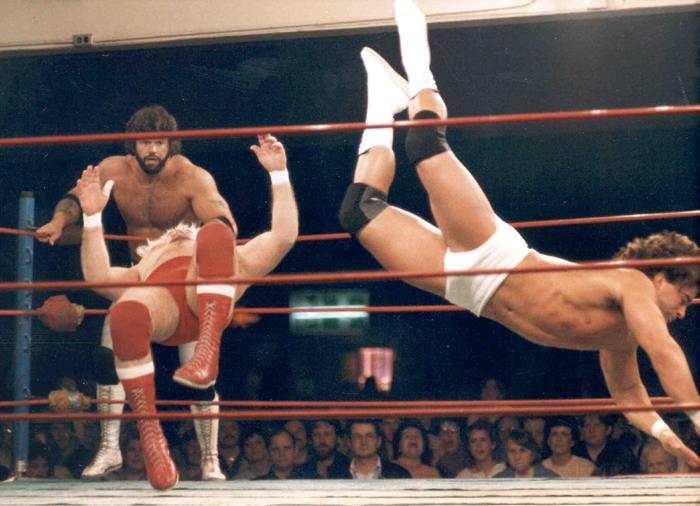 Zenk's flying dropkick from the top turnbuckle also got its first airing in PNW at a time when Steamboat's flying bodypress was considered 'state of the art' ring technique.