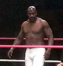 George Wells - according to Dave Meltzer's The Wrestlingg Observer's Who's Who in Pro Wrestling. George Wells (6'1", 245) Age: 49 Hometown: Oakland, CA Years Pro: 13 (in 1986) "An outstanding athlete who never made it in pro wrestling because of out-of-the-ring problems. . . Played college football at New Mexico State University and Chabot College in Hayward, California. . . Also wrestled as a heavyweight in college and did well in many AAU national tournaments. . . Went into Canadian football with the Hamilton Tiger-Cats and Saskatchewan Rough Riders as a defensive end, earning all-pro honors twice during a nine year career. . . Started wrestling in the off-season in 1974 and became a full-time grappler in 1980. . . Did well in several areas, but had problems showing up for his matches and was basically trudging along in the smallest of groups when Bill Watts turned him into Master G and tried to make him a superstar in 1984. . . Wells blew that gig as well, and went to Titan Sports, where his problems were overlooked. . . Has mainly worked in prelims without getting a push with Titan." "An outstanding athlete who simply blew a great pro career. . . Weak on interviews. . . Fantastic agility for one so large. . . Just going through the motions now and no longer a good worker, but has the potential to have good matches when he wants to."