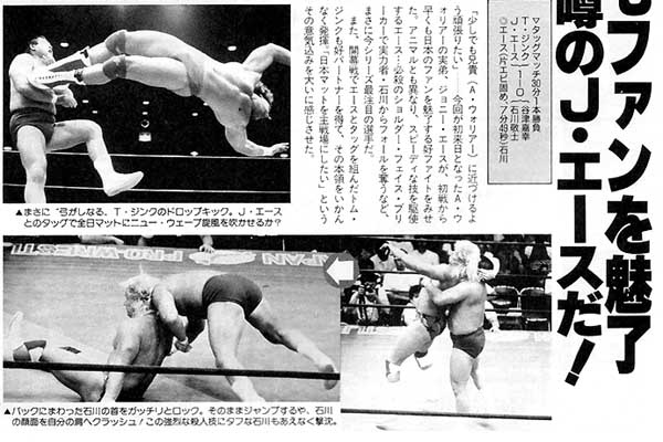 (TV Match) Tom Zenk and Johnny Ace defeat Yoshiaki Yatsu and Takashi Ishikawa in an upset finish when Ace pinned Ishikawa at 7:49 after a Ace Crusher.