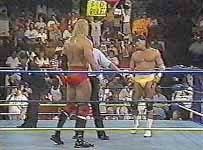 With Anderson's intentions now clear and Zenk refusing to quit ('until hell freezes over') Anderson began jobbing him out to an endless succession of 'hot heels' (Vader, Hansen, Vicious, Callas, etc). By June, Pillman - despite his friendship with Flair - had joined Zenk in jobbing to Callas, Vicious and others (see below).