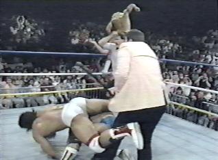 This is considered a major booking mistake as it tones down the heat in a very promising angle. Cornette and Midnights having major trouble with NWA following Flair's resignation from committee. "The angle with Zenk and Pillman on 3/10 [broadcast date] was fabulous. All the men involved deserve a round of applause ...This was the best angle in the NWA in a long, long time and the extra touch of unnecessary violence was really appreciated" (Letter to WON 4/2/90) |