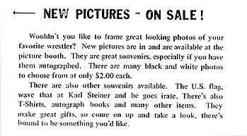 "The people were paying good money and we wanted to entertain them. We'd also have special nights ("Kids Free with Paying Adult," etc.) to help out the house. Prices were usually $8.00 for ringside, $7.00 for the floor and $5.00 general admission. This was small town America and there wasn't much to do in many of these towns so the shows were family events," Owen recalls.