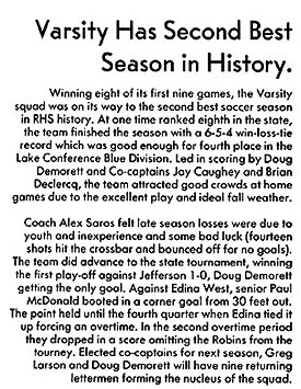 "I was about 16 - a senior in high school but too small to play football. So I played soccer for Robbinsdale Junior Varsity. We were the travelling team ...my position was forward inside right."