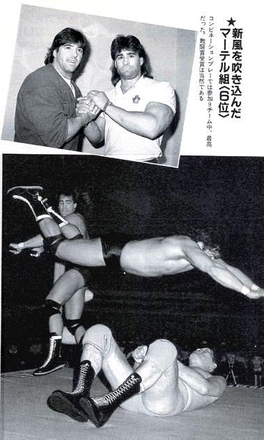 Tom Zenk over Shinichi Nakano with a power slam 7:56. Rick Martel with his usual leap over the top rope and splash on Animal Hamaguchi 7:51 |